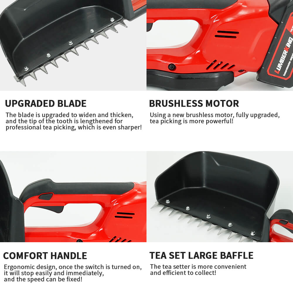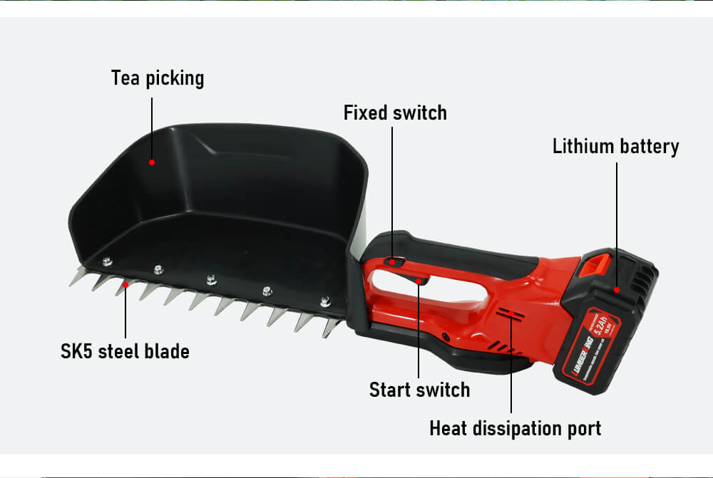 This hand held tea leaf harvester is built with modern lithium battery technology, offering steady and reliable power for every harvest. It is lightweight, so workers can pluck tea leaves comfortably without strain.